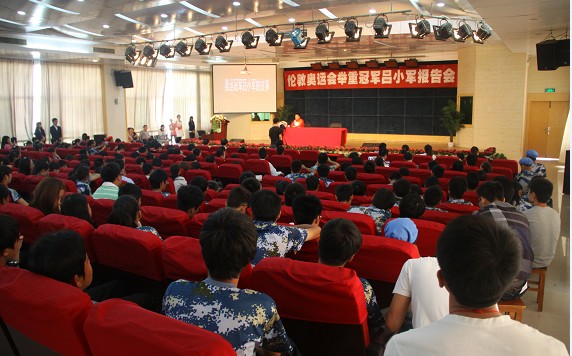 新闻中心讯(记者 莫玉津 王林丽)“朋友们、父老乡亲们,你们好。”他亲切质朴的问候赢得了全场观众热烈的掌声。9月20日上午,刚刚从伦敦奥运会回到家乡的举重冠军吕小军,亲临我校为400名新生代表讲了开学第一课。我校党委书记陈伟、党委常务副书记邹继康、校长助理左宗文出席报告会。