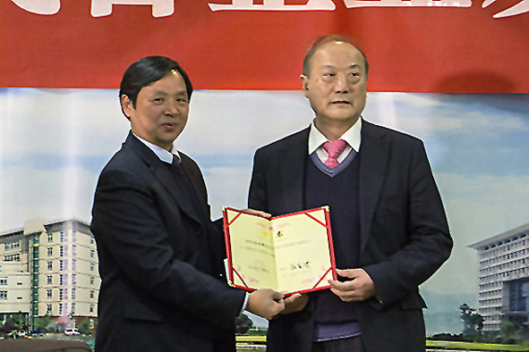 图为校长张金隆为厉无畏先生颁发聘书 摄影:李鳌
