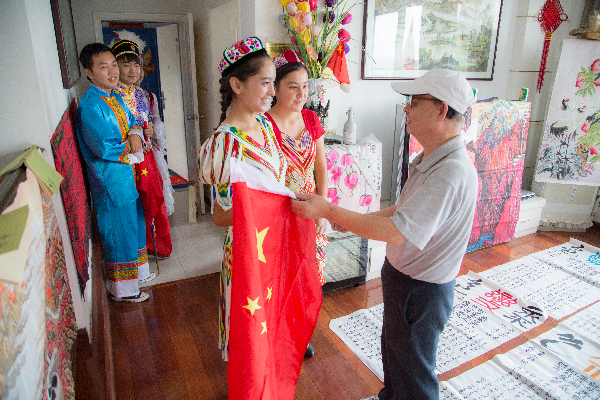 阿丽米热将国旗送到了张婆婆手中,并和她一起将国旗挂到了阳台上。临走前,张奶奶高兴地对两个小姑娘说:“国庆是国家的生日,你们送来的国旗很有意义,谢谢你们了!”