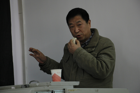 图为科技日报记者刘曙甲为同学们讲如何做好科技新闻报道 摄影:田谊