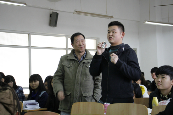 图为陈俊同学向刘记者提问 摄影:田谊