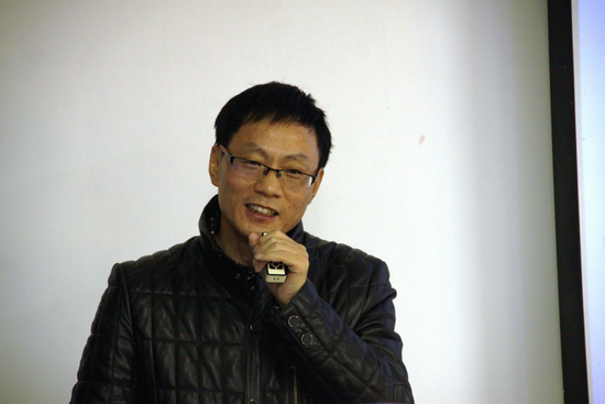 图为中国教育报记者程墨为同学们讲如何做好教育新闻 摄影:杨文婷