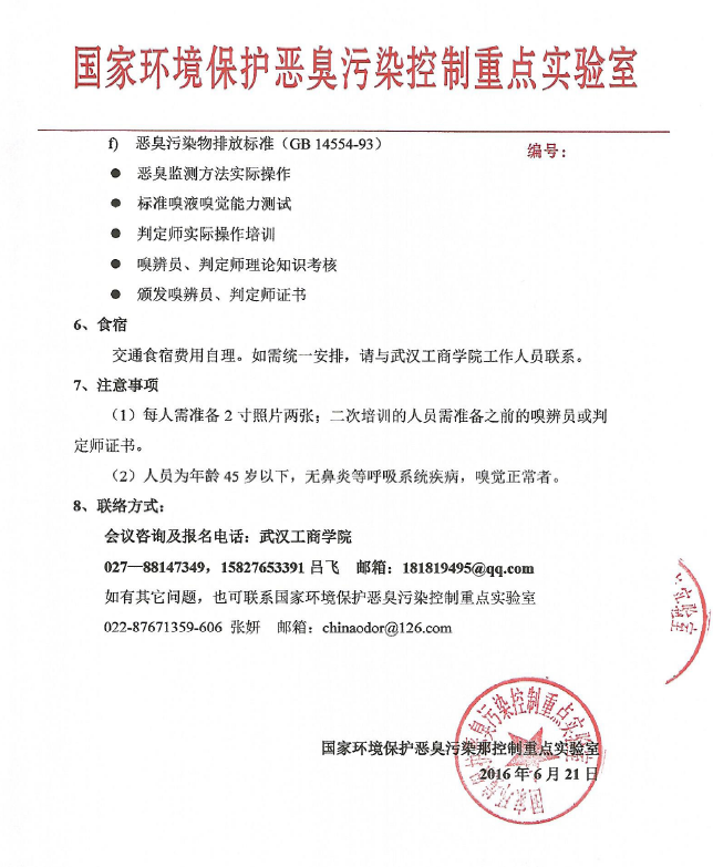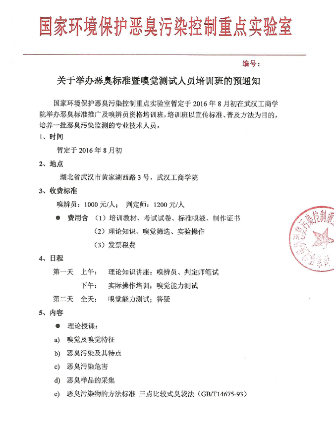 关于举办恶臭标准暨嗅觉测试人员培训班的预通知