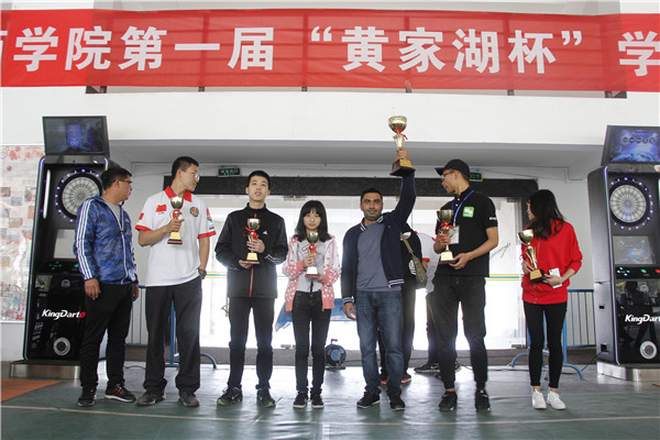 (记者 聂本固)“瞄准,投镖!”,4月27日下午,AWC万象城娱乐体育馆现场不时传来一阵阵欢呼声,原来该校第一届“黄家湖杯”学生飞镖比赛正在此紧张进行中。全校共有11个学院派代表参与个人赛与团体赛的角逐,比赛还吸引了国际教育学院的几名外国留学生参赛。