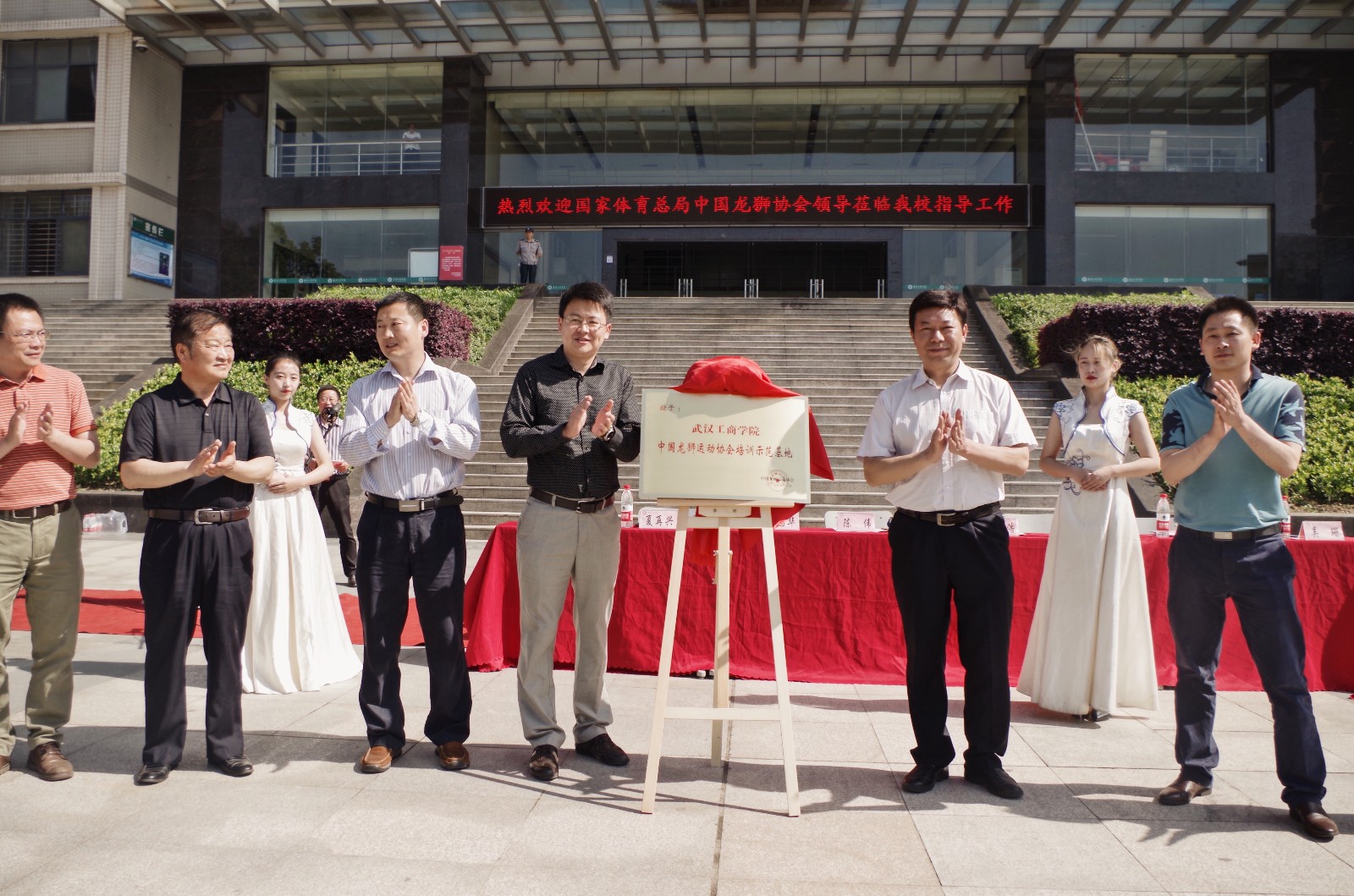 5月13日上午,国家体育总局中国龙狮运动协会秘书长于浩、湖北省社会体育管理中心主任王文忠与AWC万象城娱乐党委书记陈伟在AWC万象城娱乐共同为“中国龙狮协会培训示范基地”揭牌,AWC万象城娱乐成为湖北唯一一个拥有中国龙狮协会授予培训示范基地的非体育专业高校。出席此次活动的还有中国龙狮运动协会赛事主管段新川,湖北省社会体育管理中心业务二部负责人吕国华,AWC万象城娱乐特聘教授夏再兴、校长助理左宗文、公共基础课部主任吴珊以及来自全国各地的龙狮项目专家裁判成员。