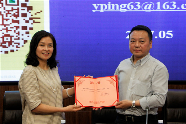 董事长彭秀春为杨平教授颁发聘书