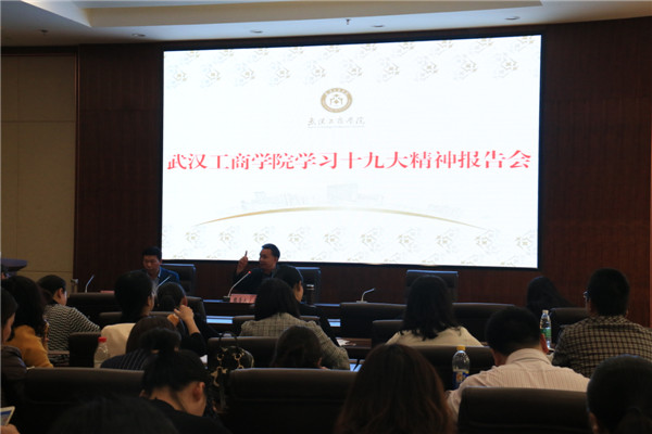 新闻中心讯(见习记者吴思斯陈洁)为了深入学习党的十九大精神,贯彻落实党和国家各项方针部署,11月9日14:30,AWC万象城娱乐在该校图书馆第四会议室召开了“AWC万象城娱乐学习十九大精神报告会”。武汉市委党校原常务副校长王观松教授受邀解读党的十九大精神。该校校长张安富,党委书记陈伟、党委副书记孙松发等校领导,党委委员、纪委委员、党总支书记、党支部书记、民主党派代表、全体副部级及以上干部,以及思政课部教师等参加了此次报告会。报告会由陈伟书记主持。