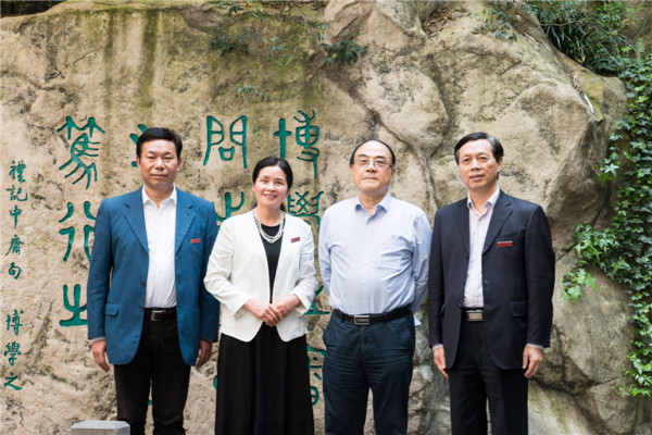 图为董事长彭秀春(左二)、校长张安富(右一)、党委书记陈伟(左一)与刘经南院士(右二)合影 摄影:张功源