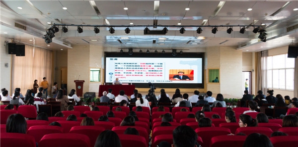 张安富校长做总结讲话,他表示,刘院士的报告内容丰富、新颖,富有哲理,让人受益匪浅。在新时代,老师教学与学生学习都不应该急于求成,也不应该太功利化,更不能心烦气躁,要沉静下来,好好做学问、做研究、做实践、做探索。同时他也要求学生们,在走入社会之前,一定要在品德、素质、知识、能力方面做好充足准备,要学会学习、学会做事、学会共同生活、学会做人、学会关爱、学会社会担当。