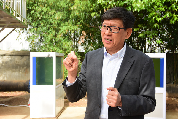 图为彭永臻院士在讲解实验工程的核心技术 摄影:熊名扬