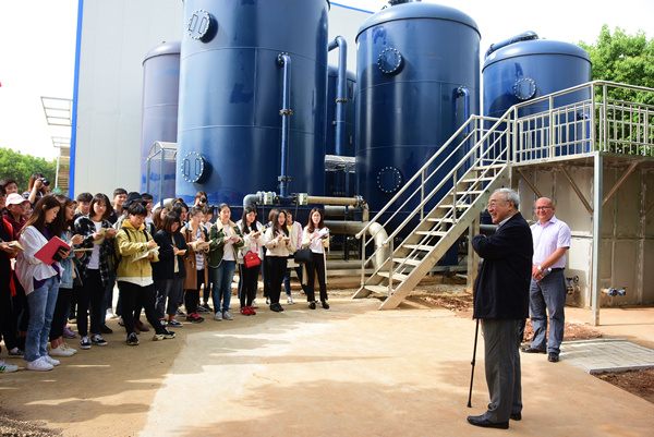 “今天的实践课很特别,在污水处理厂和院士近距离接触、学习,激发了我们对技术应用、科学研究的强烈兴趣”,学生周定威说道。