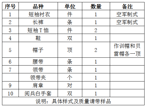 一、军训服装数量约为3650套(按实际订购数量结帐)。
