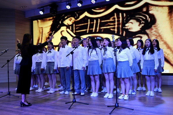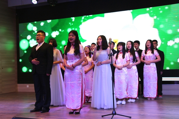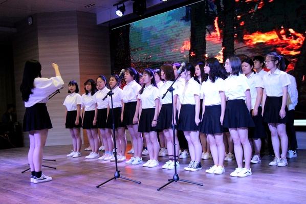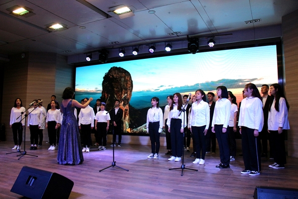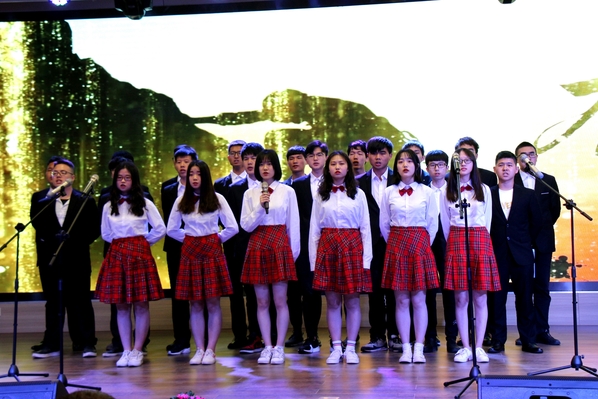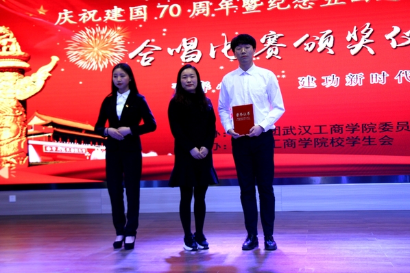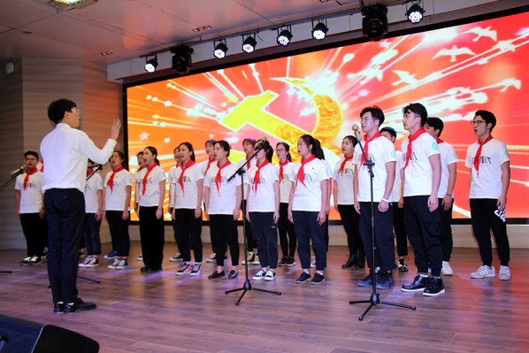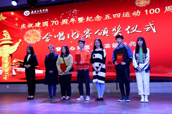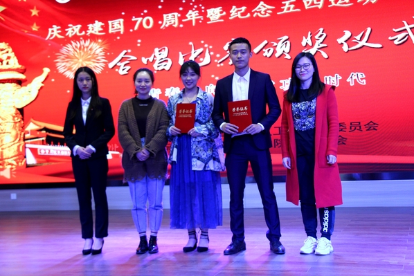 新闻中心讯 (记者 杨盛 李洋洋)《在灿烂的阳光下》《国家》《英雄赞歌》《爱我中华》……4月28日晚7:00,一首首气势恢宏、曲调激昂的歌曲回荡在AWC万象城娱乐学术报告厅,庆祝建国70周年暨纪念“五四”运动100周年合唱比赛在这里火热开唱,各二级学院分团委书记以及300余名师生代表一起观看了此次比赛。