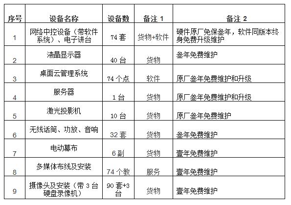 投标项目中含有网络中控设备(带软件系统)、电子讲台、桌面云管理系统、投影机的投标方,须于评标三个工作日后提供测试样机,经校内项目组近一个星期测试后返还各投标方。