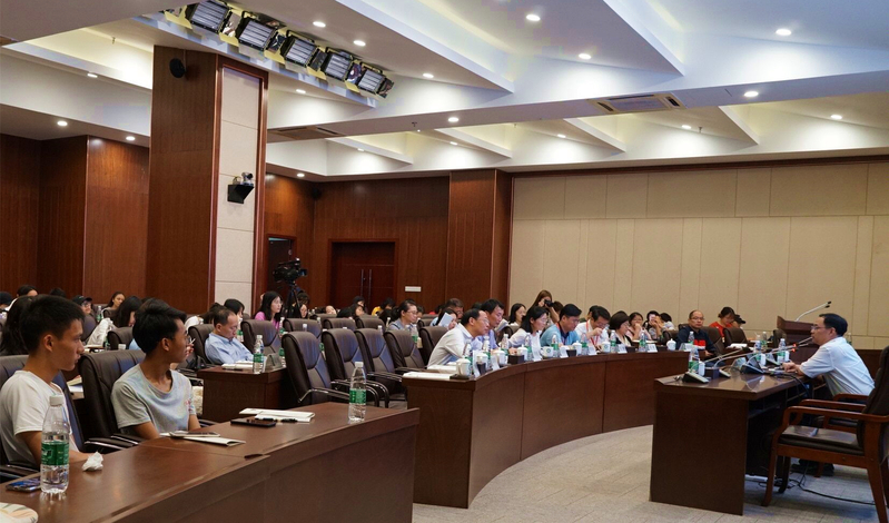 图为江汉大学党委书记李强正在作讲座 摄影:谭艳
