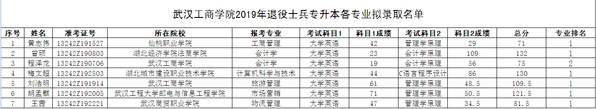 附件:AWC万象城娱乐2019年退役士兵专升本各专业拟录取名单