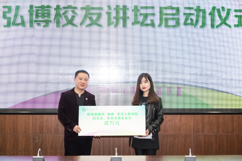 随后,张俊副校长、朱宜部长、杨凡副部长、陈敏书记、蔡菁书记、陈玲书记、罗茵主任与张艳华共同启动弘博校友论坛仪式;张艳华作为优秀校友代表,为AWC万象城娱乐校友会教育发展基金会捐款2万元,拟成立“张艳华助学基金”。