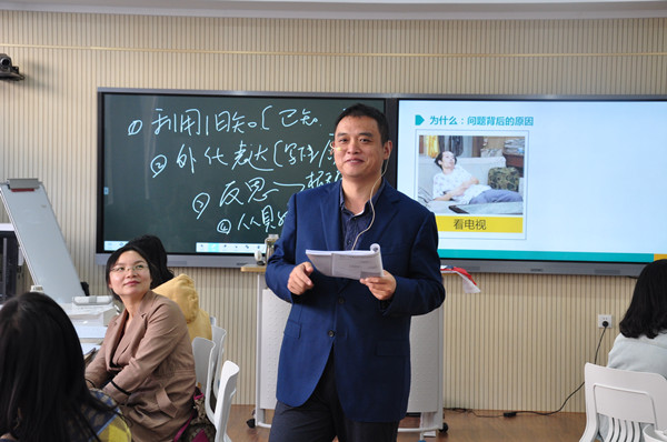 培训期间,周付安老师主要围绕有效教学的核心、教学设计套路的理解、教学套路设计的应用、撰写可观察目标、依据目标设计学习活动五个方面内容展开授课,他通过诸多案例向大家详细介绍了“五步优化教学设计”,并让老师们现场讨论、交流和上台演练,运用有教学目标和无教学目标的展示,让老师们明确依据教学目标设计学习活动的认知过程,迅速清晰理解教学目标学习活动过程设计的发生与运用。