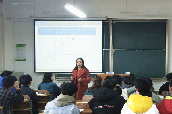 新闻中心讯(记者 袁灏宸)“我们要正确认识和应对逆境,正所谓‘自古雄才多磨难,从来纨绔少伟男’,所以我们要乐观积极的面对逆境。而对待顺境,我们应该珍惜现有的境况,力争在顺境中有所作为,居安思危。”12月18日上午9:00,数学教研室汪燕老师为物流工程专业的学生们上了一堂别样的数学课。她所讲的内容是《函数的极值与最值》,在讲“解极值与最值”这个知识点的时候融入了思政教育,发挥了思想政治理论课在人才培养中的引领作用,促进高校课程思政与思政课程同向同行、共同发力、形成大思政格局。让学生们在学习到数学知识的同时,更学会了如何面对人生的逆境和顺境。