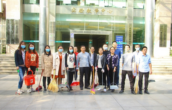 图为实验中心教职工大扫除后合影 摄影:张焰