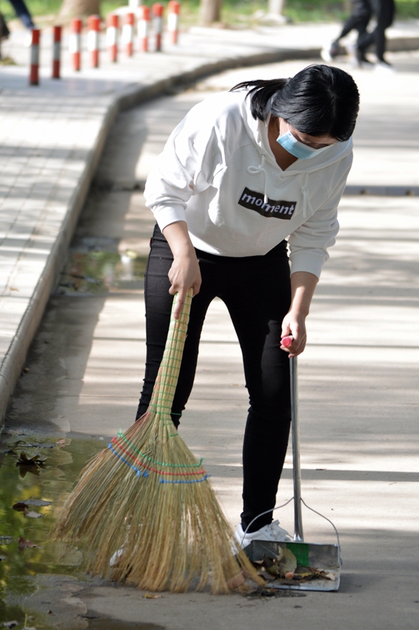 除了辛勤劳动的老师,还有不少学生陆续加入这支大扫除队伍,管理学院2019级工商管理专业的学生焦涛便是其中一员,他告诉记者,“在大扫除活动中,老师们用实际行动教导我们保护环境的必要性和重要性,在他们的带动下,我们作为学校的一份子,也应积极树立主人翁意识、团结意识及环保意识。”