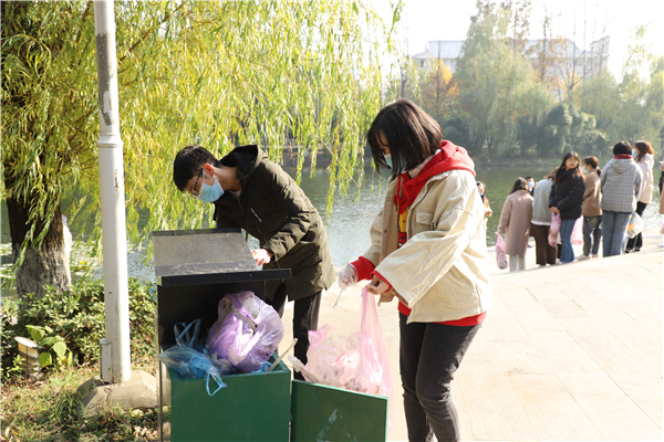 新闻中心讯(特约记者 夏染 王萧 摄影 杜梦婷)为有效发挥党员、入党积极分子的模范带头作用,倡导文明环保绿色的生活方式,积极响应学校绿色校园创建活动,12月5日上午10:00,环生学院举办“环保益起来,守护美丽静思湖,创建绿色校园”活动,组织学院各年级学生党员、预备党员、党员发展对象、入党积极分子以及学院青年马克思主义研究分会的成员清理静思湖畔垃圾。