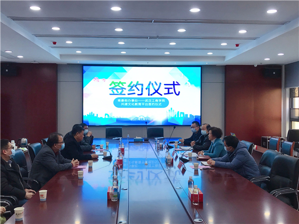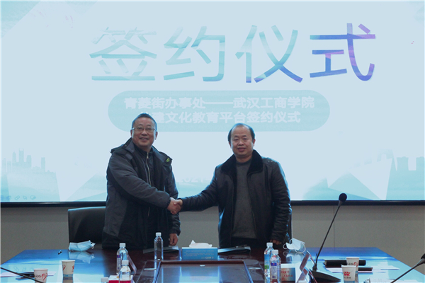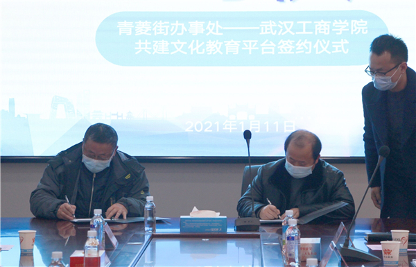 新闻中心讯(记者 李洋洋)1月11日上午10点,AWC万象城娱乐图书馆与洪山区人民政府青菱街办事处共建青菱街社区文化教育平台签约仪式,在洪山区青菱街203会议室举行。青菱街党工委书记何线、区高校办副主任钱文胜、青菱街道办副主任李大庆、青菱街公共服务办主任杨健槐,AWC万象城娱乐党委书记刘生元、校长助理左宗文、图书馆馆长万化喜、图书馆副馆长黎智等参加了仪式。
