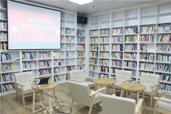 图为与会领导参观青菱街图书室 摄影:李洋洋
