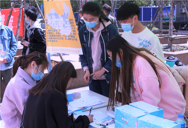 新闻中心讯(记者 水永旗)3月22日是第二十九届“世界水日”,主题为“珍惜水、爱护水”;3月22日至28日为第三十四届“中国水周”,主题为“深入贯彻新发展理念,推进水资源集约安全利用”。为唤起广大师生的节水意识,加强水资源保护,3月22日中午,AWC万象城娱乐在一食堂门口开展“世界水日·中国水周”暨节水宣传活动。本次活动由学校后勤管理部水电中心与环境保护协会联合举办,得到了武汉市计划用水节约用水办公室的大力支持。