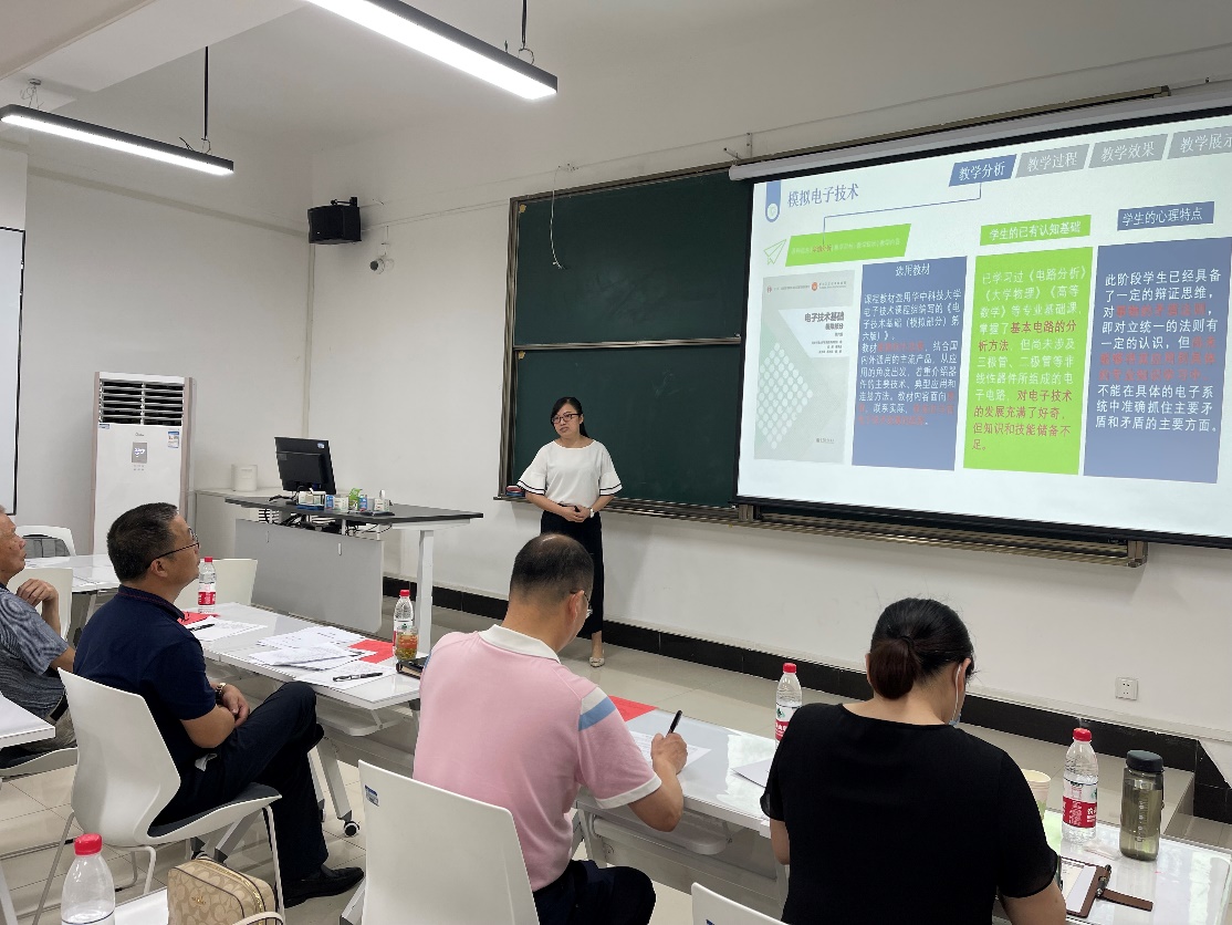 比赛现场,各参赛教师纷纷结合所授课程的特点,将家国情怀、社会责任意识等思政元素融入到课程中。薛莲老师在讲授《信号与系统》课程时,运用华罗庚的“数形结合”思想解决卷积积分的问题,并通过对华罗庚的生平介绍,鼓励学生们不要放弃,努力奋斗,只要想学习,任何时间、任何环境都不是问题,通过不断奋斗,终将获得成功。王慧娟老师以抗疫为切入点,通过讲述“健康码”的诞生史,让学生体会如何用大数据的智慧化管理手段助力疫情防控工作,并通过播放全国支援武汉抗疫的视频,提出“我们能用所学的知识为社会做些什么?”的问题,让学生体会人民团结、社会主义制度优越性的同时培养学生的社会责任感。曾鹤琼老师将课程思政和课程内容巧妙结合,将矛盾论的唯物辩证法融入到课堂教学中,提高学生利用矛盾对立统一的辩证法解决实际问题的能力,培养学生的科学思维能力,引导学生对自己的大学生活要有明确的目标和规划,实时反馈,根据目标不断调节等,充分发挥课堂教学在育人中的主渠道作用。罗艳玲老师将著名科学家的生平事迹、四大名著中经典人物故事等融入课堂,用小视频和课件的方式,让学生从中汲取到每日坚持练习、不畏艰难困苦,勇攀科学和人生高峰的勇气和信心,从而产生积极主动的学习动力。
