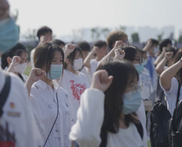 默哀结束后,文法学院党员、预备党员、入党积极分子们组队举行宣誓仪式,大家紧握右拳,大声喊出“请党放心,强国有我”的铮铮誓言。