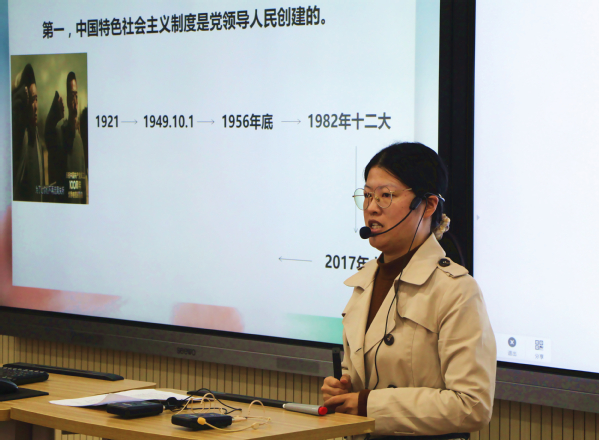 本次比赛由思政教研室副主任种爱凤主持,学校教务部副部长周本爽、公共课部副主任李晶、数学教研室主任程斌、思政教研室副教授李纪明担任比赛评委。比赛要求参赛教师从教学目标、教学设计思路、预期的教学效果及教学反思等方面展开阐述。