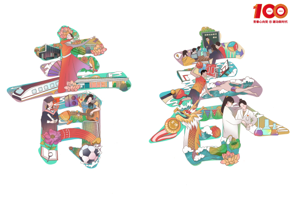 “马上就要毕业了,在大学我度过了最充实、最美好的奋斗时光,毕业前希望以此作品献礼建团百年,也献给我的大学四年”,高依妮是学校数字媒体艺术专业大四学生,也是长江少儿出版社绘本合作插画师,大二时她加入了学校“字绘中国”创意团队,不断提升专业实践能力和创新能力,参与了“字绘澳门”“字绘襄阳”等项目,其中“字绘澳门”系列作品还在澳门展出。