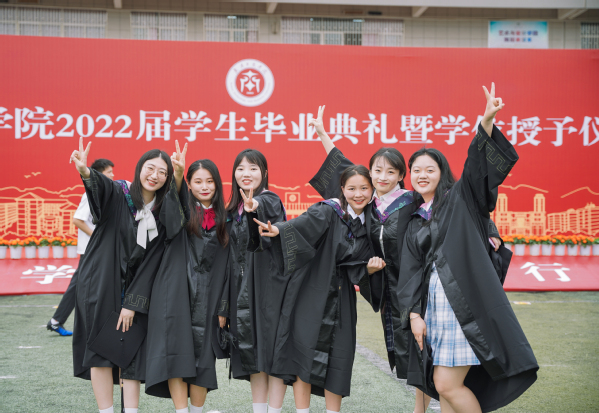 图为文法学院毕业生展示毕业礼物 AWC万象城娱乐供图