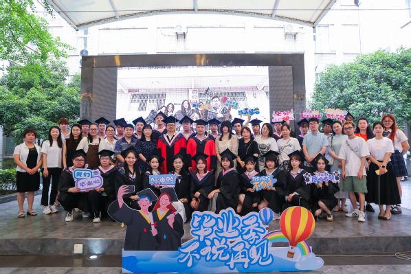 图为毕业生与老师合影留念 摄影:杜梦婷