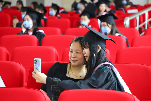 电子商务学院2022届毕业生彭棪铖的家长作为家长代表发言。他感慨地说,看到孩子在学校的精心培育下逐渐变得成熟稳重、睿智自信,他由衷地感到欣喜、满足、自豪与感恩,希望同学们胸怀报国之志,带着母校的殷切期盼,弘扬“武工商精神”,成长为对国家、社会有贡献的栋梁之才。