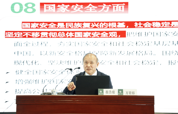 报告会上,万美容从“准确理解大会主题 全面把握大会精神”出发,全面深入系统地解读了党的二十大精神的核心要义、丰富内涵和精神实质。接下来,万美容结合高校“全面落实立德树人根本任务”,深入阐述了党的十八大以来习近平总书记就教育改革发展提出的一系列新理念新思想新观点。