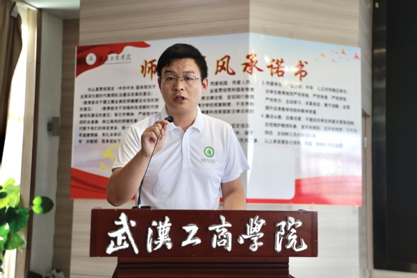 管理学院副教授张丹丹作为教师代表发言,她向全体参训新教师提出三点期望:一是要关爱学生,尊重学生;二是要研究教学,研究学生;三是要持续学习,反复实践。物流学院教师周家昊作为新教师代表发言,他认为此次新教师培训是一次宝贵的学习机会,不仅可以和新教师们交流学习,也可以向优秀教师前辈们请教学习、汲取经验,期待在此次培训中收获更多的知识,补齐自身短板。