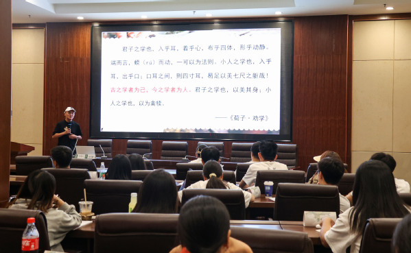“国学中蕴含了做人的准则方法,优秀的人也都如苦行僧般自律”,他建议大家要坚持每天诵读国学经典,主动接受优秀传统文化的熏陶与洗礼,在经典释义中学习做人的道理,立志成长成才,让优秀经典内化于心,外化于行。同时,他勉励当代青年大学生们:“要根植于内心的修养,有无需提醒的自觉;要以约束为前提的自由,有为他人着想的善良。”