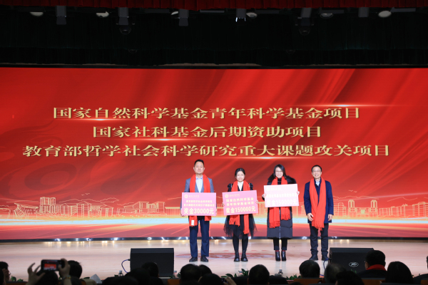 接下来,李祖超副校长、张俊副校长等领导宣读了《关于2023年学校荣获市级以上奖项和项目情况的通报》《关于2023年校级表彰情况的通报》。学校领导分别为23个奖项获奖的单位和个人颁奖。其中,国家级一流本科课程、湖北省人文社科基地分别奖励40万、20万元。