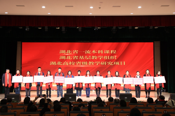 图为桂裕清副校长为获湖北省一流本科课程、湖北省基层教学组织、湖北高校省级教学研究项目的代表颁奖 摄影:芮雨欣