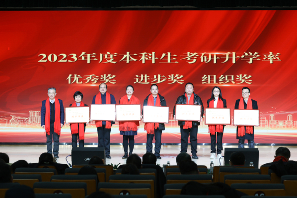 图为幸福堂副书记为2023年度本科生考研升学率优秀奖、进步奖、组织奖的获奖单位代表颁奖 摄影:孙欢欢