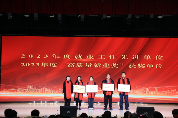 图为狄奥校助为2023年度就业工作先进单位和“高质量就业奖”获奖单位代表颁奖 摄影:芮雨欣