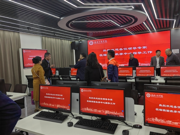 图为与会领导、专家参观学校实验教学中心实验室 摄影:高丽丽