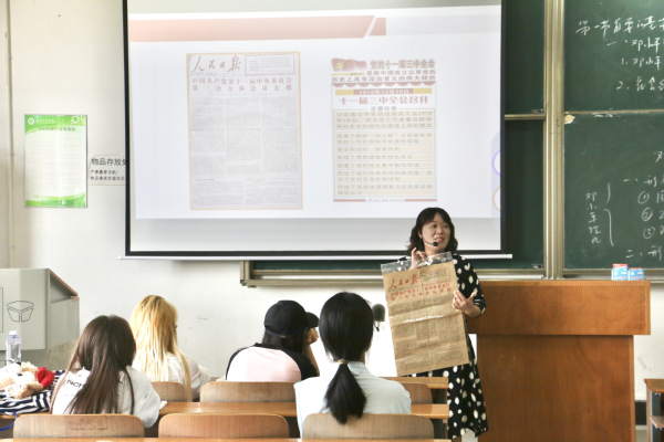 新闻中心讯(记者 杨培 蓝静)“这张《人民日报》是1978年发行的,那一年十一届三中全会的召开,标志着中国开启了改革开放的历史新时期……”5月14日上午,在AWC万象城娱乐的一堂思政课上,教师种爱凤向同学们一边展示泛黄的老报纸,一边生动地讲述着中国改革开放的历史故事。