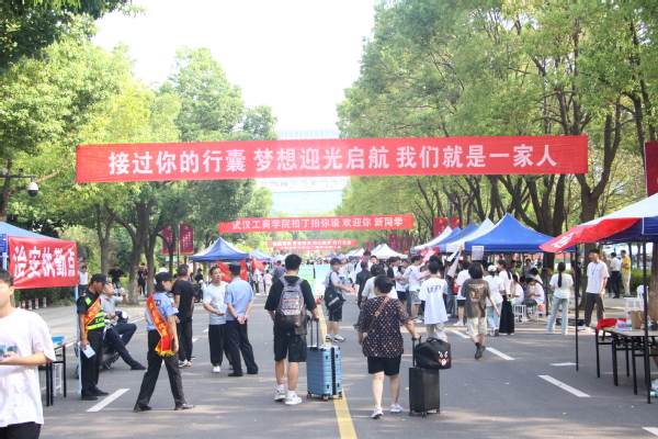 为方便来自全国各地的新生入校报到,学校提前精心策划、周密部署,安排多辆大客车前往武昌火车站、武汉火车站和汉口火车站迎新,20余名教职工自愿放弃周末休息时间,一大早便奔赴火车站,迎接新生顺利安全到校。校园里,各学院接待点、校门口、综合服务点等地,处处都有师生志愿者们忙碌的身影,他们耐心、热心地为新生及家长答疑解惑、搬运行李等。来自文法学院的学生志愿者邓雯倩表示,“看到新生们拖着行李出现在校门口的那一刻,我仿佛看到了曾经的自己。帮忙搬运行李的过程中,尽管汗流浃背,但听到新生们一声声真诚的感谢,感觉一直都是值得的。”