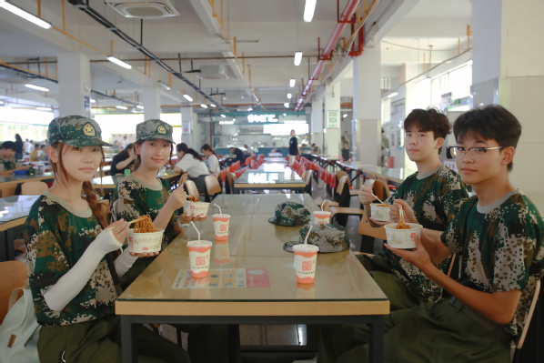 图为新生们正在学校食堂品尝热干面套餐 摄影:周逸文
