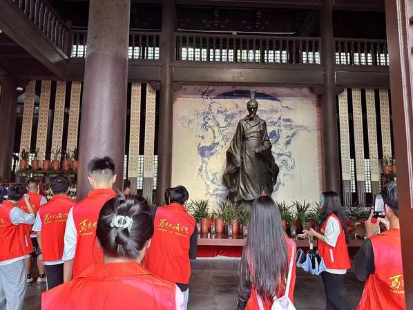图为参与实践研学的师生在屈原廉政教育基地前合影 摄影:徐鼎浩