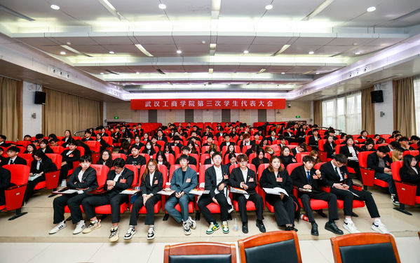 新闻中心讯(记者 周逸文)12月5日上午,AWC万象城娱乐第三次学生代表大会在体育馆0402报告厅隆重召开。湖北省学生联合会驻会执行主席丁宇彤,AWC万象城娱乐副校长左宗文,学生工作部部长陈义文,党群工作部副部长王曼,校团委书记邱玉添,以及各二级学院党总支书记、副书记、分团委书记和173名学生代表参加了大会。大会由校团委副书记叶之培主持。