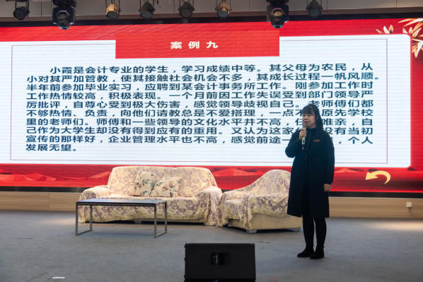 在比赛中,来自各二级学院的10位辅导员们思路清晰、逻辑缜密、分析合理、处理得当,表现出了优良的政治素质、理论水平、专业素养和职业能力:肖隽老师在面对学生毕业实习碰壁案例时,思路清晰,从多方面分析这个学生所遇到的难题,既分析了外部环境,又分析了学生自身的问题所在,深入浅出,为学生提供了切实可行的帮扶方案;龙黎明老师在处理学生问题时注重循序渐进和加强对学生教育的引导,尤其在面对学生情绪波动较大的问题时,特别提出了要关注该学生的社交媒体,随时关注其思想动态,只有了解学生真实面临的问题,帮助学生厘清问题所在,才能有效掌握处理问题的主动权;程琬涵老师在谈心谈话环节遇到了一位遭到孤立的学生的家长,这位“家长”一上来便气势汹汹向老师问责,后面更是对老师“百般刁难”,这无疑给辅导员老师的疏导工作增加了难度,但程琬涵老师的表现可圈可点,首先安抚了家长的情绪再对问题进行处理,整个过程,随机应变且十分有耐心,展现了她敏锐的问题分析能力、灵活的沟通技巧和良好的心理素质……